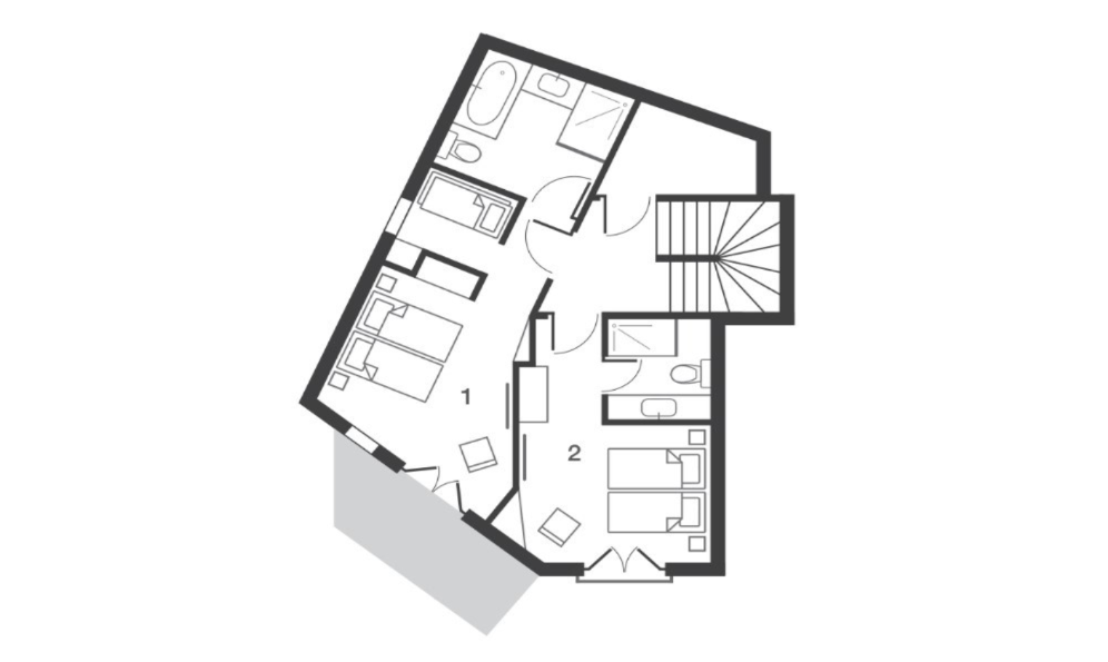 Lower 2 - (Lower 1) - Double / Twin with en suite shower & WC, (space for cot).