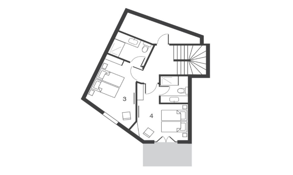 Chalet Kobuk offers the perfect space for 8-10 guests, spread over three floors with a cosy mezzanine above. The huge windows and balconies draw the mountain panoramas into every room. Built into the side of the mountain, the open plan living / dining area provides the ultimate place to relax at sunset and ponder the snow cats doing their work on the pistes below. The four en suite bedrooms occupy the lower floors, one with additional bunk beds (charged at half the adult price).