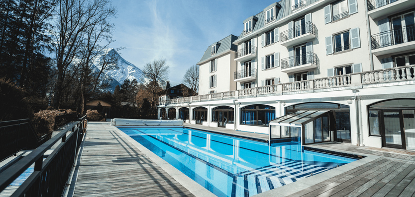 If you need a break from the party, take advantage of the large spa with sauna and steam room plus the outdoor pool with fabulous views across to Mont Blanc.