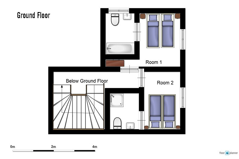 Room 3 - Twin with bath (with shower fitting), WC and shared balcony