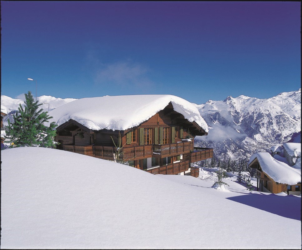 The fabulous galleried living area boasts a sensational fireplace with huge windows and a terrace that provides a spectacular vista of Le Signal and the surrounding mountain peaks.