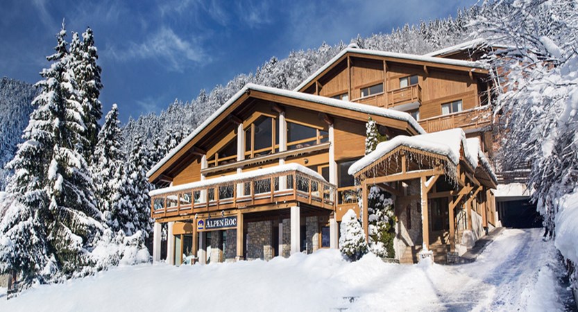 The Hotel Alpen Roc has a friendly atmosphere and welcoming service. Located only 5 minutes walk away from the Cret du Merlet ski lifts. The town centre is also only 5 minutes walk away. The panoramic views from the dining room and lounge area of the Aravis mountain range are a delight and the wellness area, with small swimming pool and whirlpool offer a welcome way to unwind after a long day exploring the slopes. The buffet dining means there’s a great choice of food plus the inclusive drinks provide great value for money.