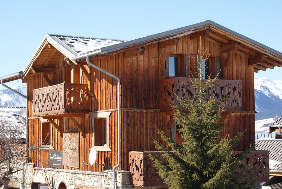 Like its neighbour, our Chalet Mont Blanc, you are just a few minute’s walk from the centre of the quaint cobbled village of Montchavin, where you will find a variety of shops, restaurants, bars, bakery, delicatessen, supermarket and lift pass office. The nearest ski hire shop is located 50m from the front door of the chalet for your convenience! The chalet is also just a short walk from the large swimming pool complex. The main cable car out of Montchavin is just across the street, which transports you to the main ski station in Les Coches, or alternative take a short ski on gentle slopes from here across to the Vanoise Express from where the vast ski area of La Plagne links with Les Arcs. In good snow conditions it is possible to ski back into Montchavin late in to the season.