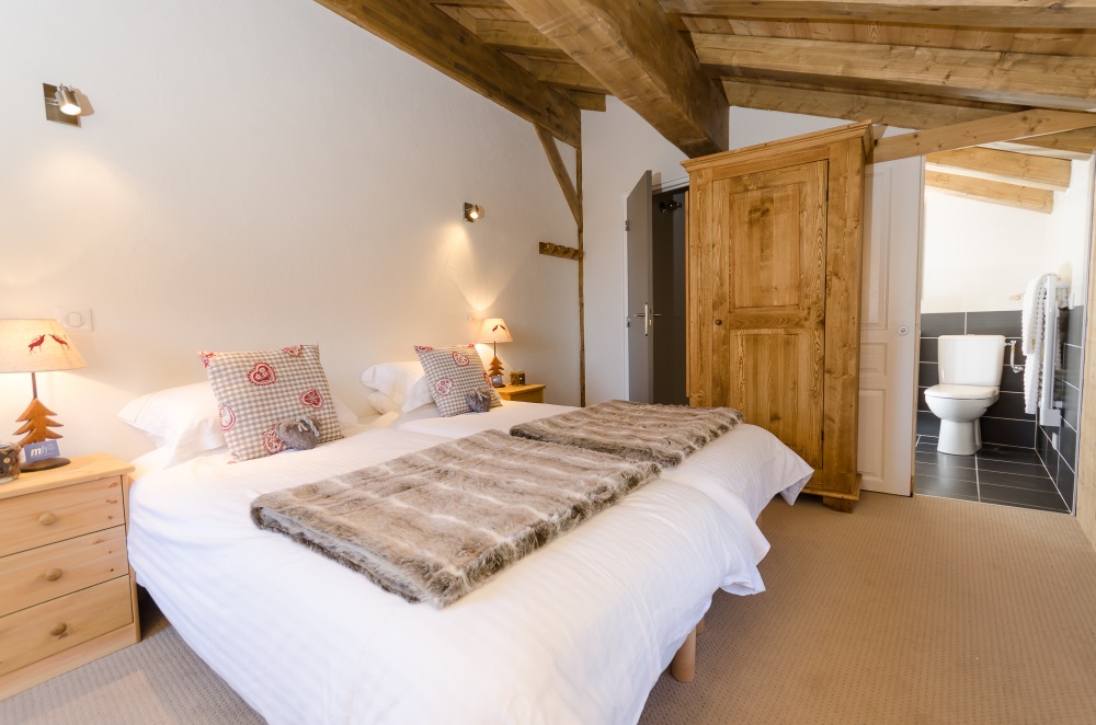 Bedroom 4 - Large Twin with en-suite shower, toilet and heated towel rail and balcony with views overlooking the Tarentaise valley