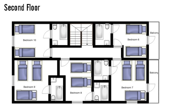 Chalet Bourdon...La Plagne... sleeps up to 24 people in 10 rooms and has a bright and spacious living area with loads of comfy seating, a log fire and a balcony with a beautiful view of the ski area and the valley beyond. There are books, an i-Pod docking station, a flatscreen TV and DVD player with a selection of DVDs (including plenty for the kids)and games to keep you entertained. There is an honesty bar that stocks beers, soft drinks & snacks. Free Wifi is available. Chalet Bourdon’s 10 bedrooms, all have ensuites with a bath. Four of the bedrooms are triples and the rest sleep 2 people. There is an extra wc in the living room.