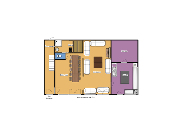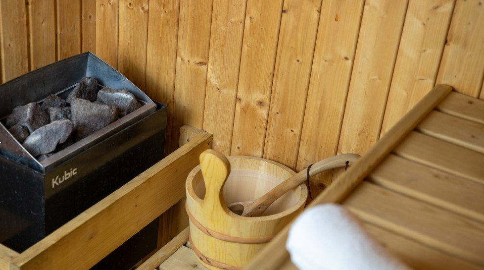 The ground floor of the chalet comprises the entrance hall and ski/boot storage area, and dining room and living room complete with large windows. After a long day on the slopes, you can relax in the sauna or cosy by the log fire with a glass of wine.