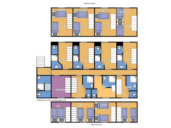 All bedrooms are located upstairs and are mezzanine twin rooms with an en-suite shower room and WC. Please note the steps up to the mezzanines are quite steep and may not be ideal for those with reduced mobility.