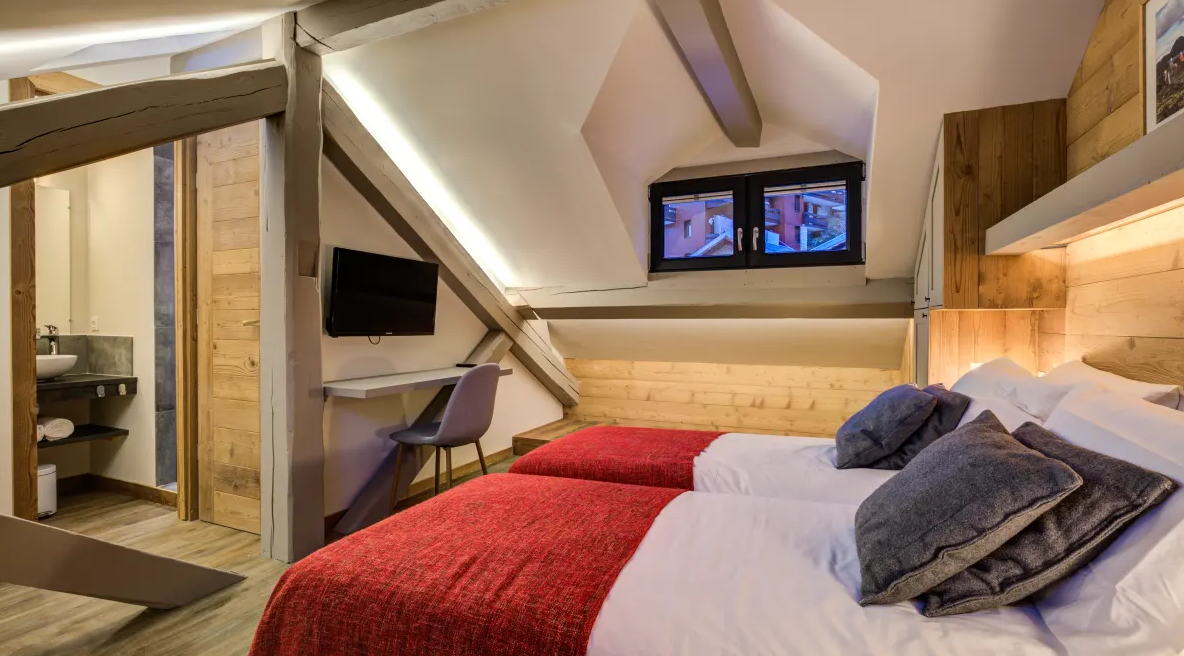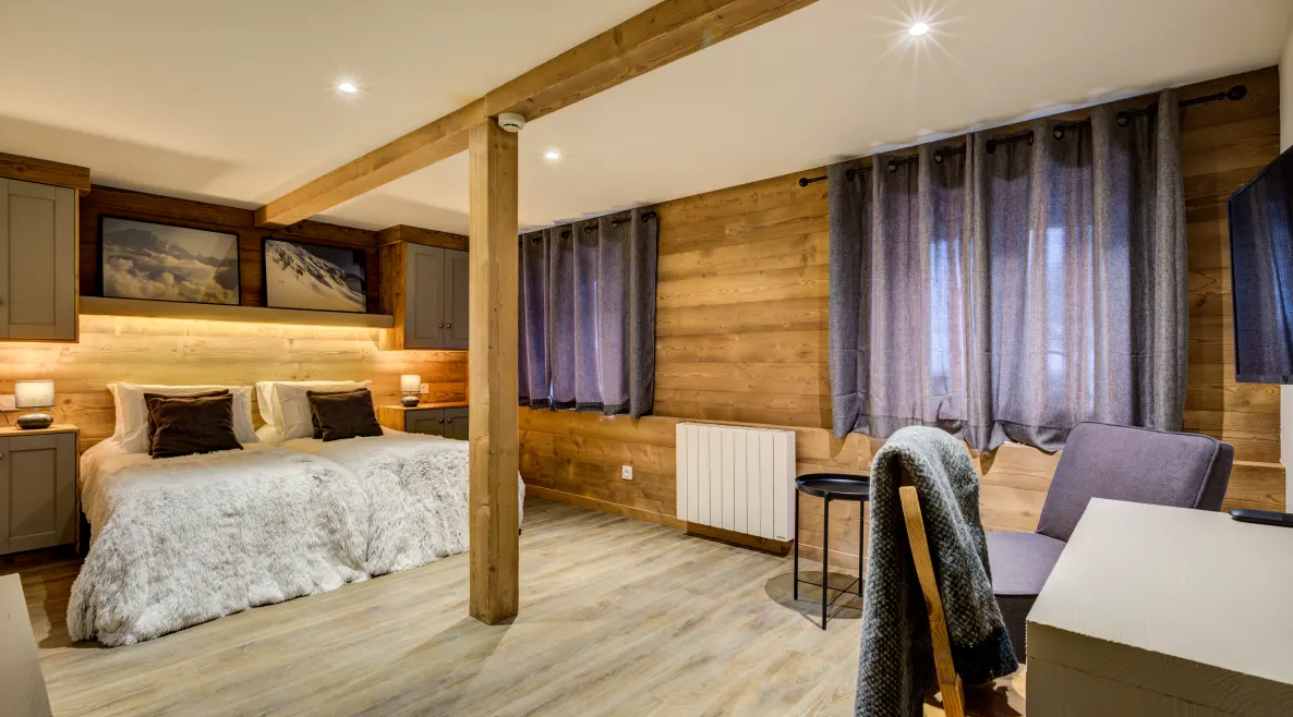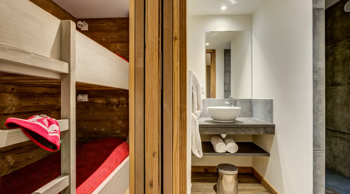 The chalet sleeps 8/10 guests in four stylish en-suite rooms, each boasting a flat screen TV and modern bathrooms. On the lower ground floor there is a large family room. This room has a desk for children to do their homework, and a lovely coin montagne bunk bed located past the en-suite shower room.