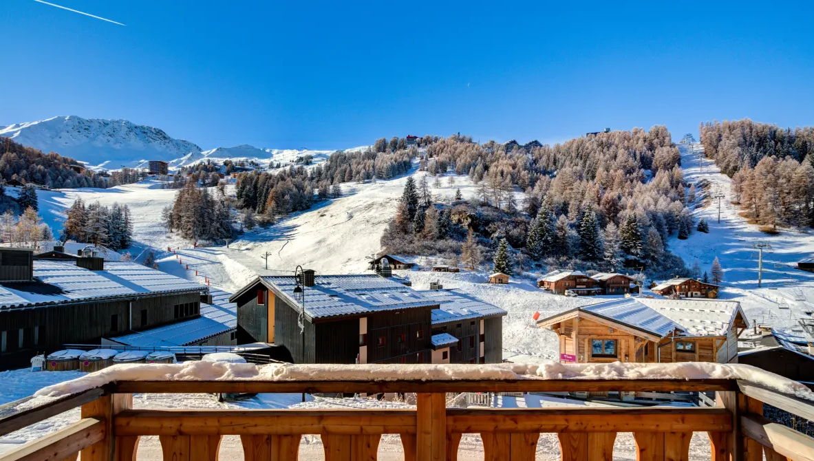 We are proud to be offering the newly refurbished Chalet de la Mine 1. It is beautifully decorated throughout with a modern neutral colour palette and comfortable furnishings. This chalet has a delightful open plan lounge incorporating a kitchen and dining area. The spacious living area offers stunning views from the balcony over the Plagne 1800 pistes. It's the perfect spot for curling up after a days skiing and watching the snow fall with a piece of homemade cake.