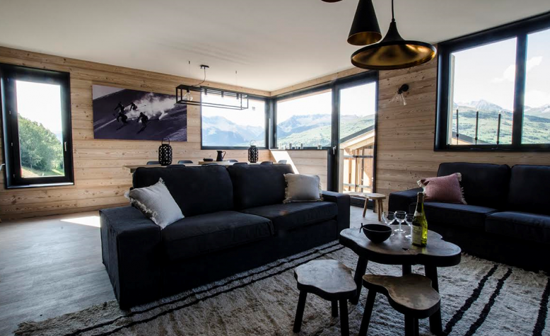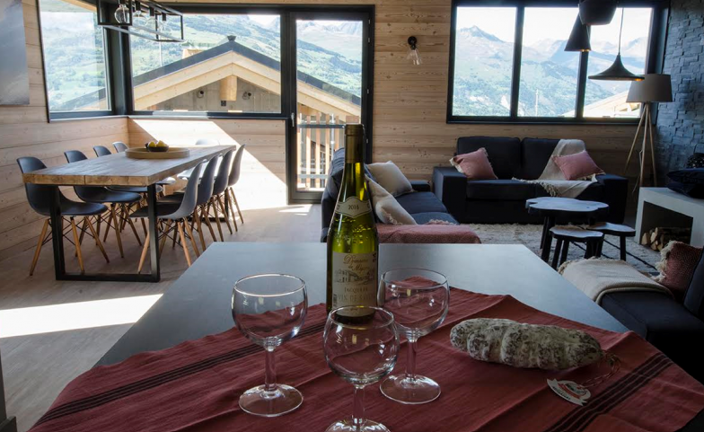 Hermine has an elevated view, with an open living/dining area that overlooks the village, Tarentaise Valley and Mont Blanc. Alongside a stunning log fire, there’s also a balcony and three secure garage parking spaces.