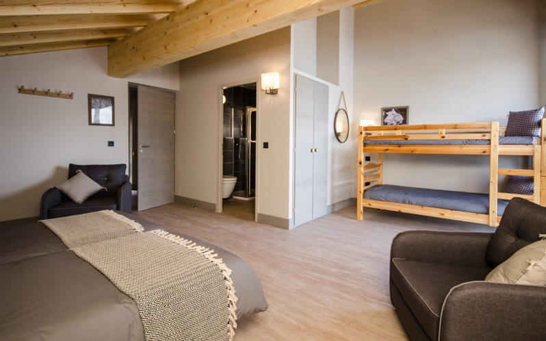 There is a top floor 'family' suite sleeping 4 guests (twin / double bed and bunk bed) featuring comfy armchairs and floor to ceiling windows with commanding views across the valley and is ensuite.