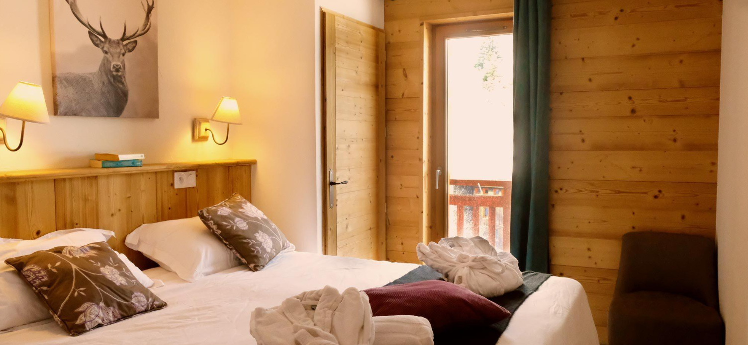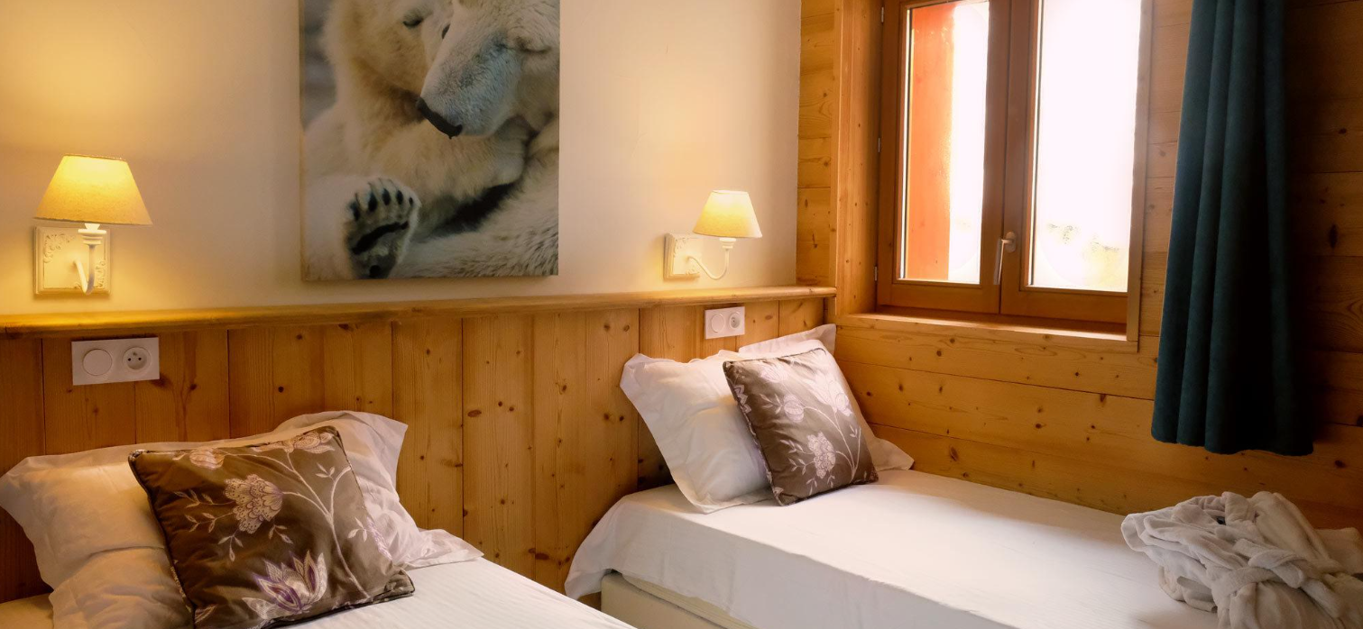 • Bedroom 3: Twin with piste views, en-suite shower, sink, hairdryer and toilet.