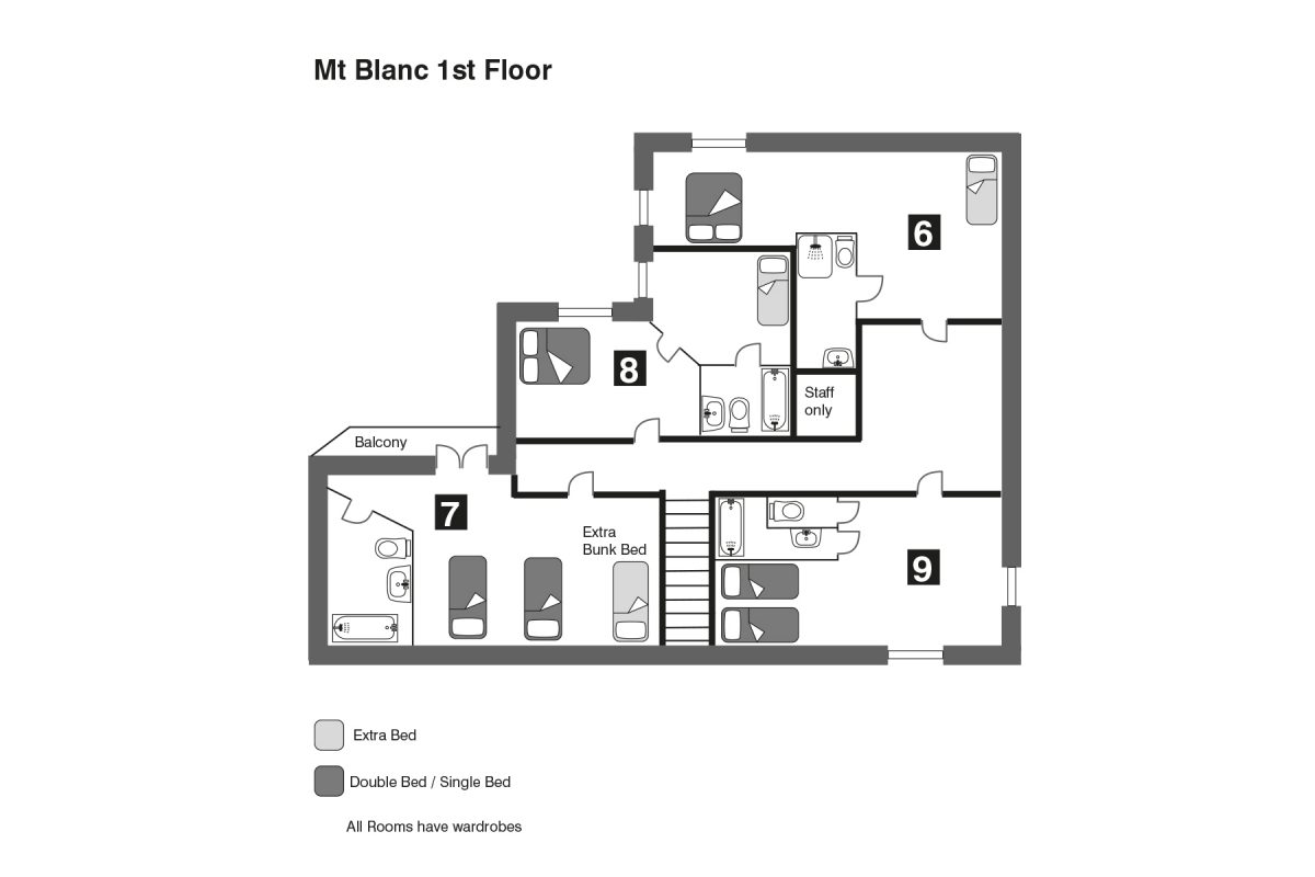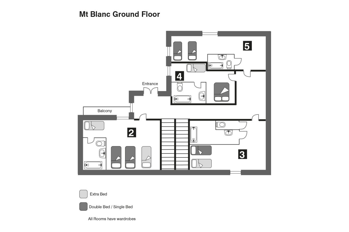 Chalet Mont Blanc sleeps between 15 and 23 in 8 large bedrooms, all of which are en-suite and delightfully furnished.