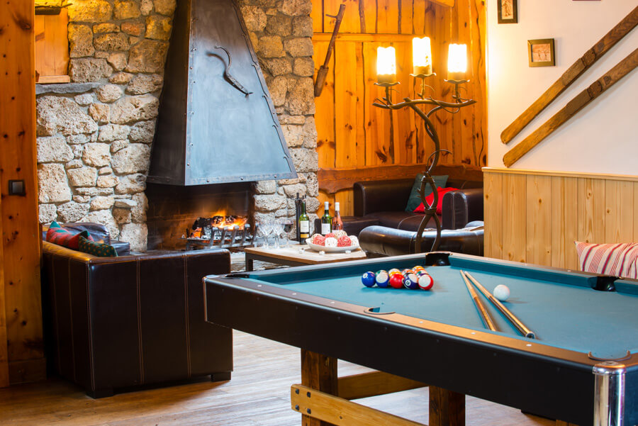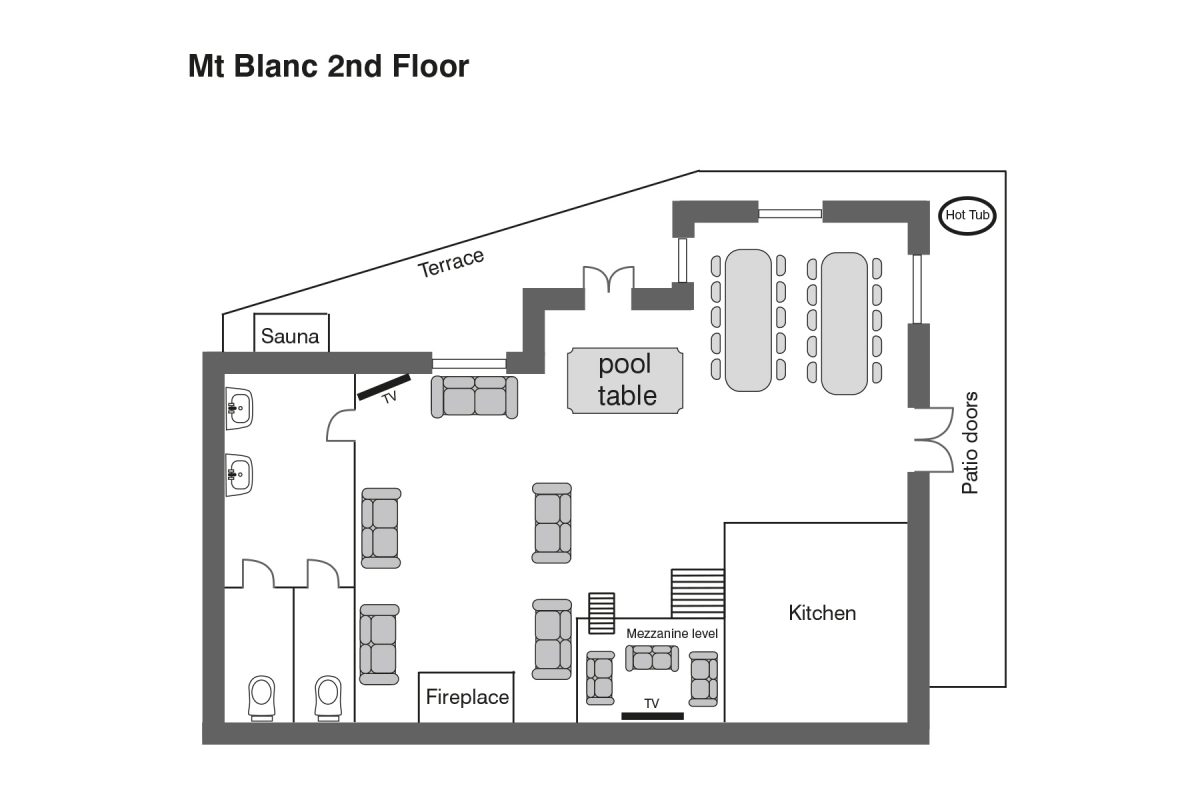 Beautifully constructed in local materials with exposed beams and wood floors throughout, the chalet interior is extremely spacious and well laid out. The large open plan living/dining room with log burning fire has a variety of relaxation areas, lounge with satellite TV, dining area with lovely views to the mountains, a mezzanine with comfy seating and further TV with games console and a recreation area with pool table. A sunny terrace off the living/dining room is home to the hot tub and sauna.