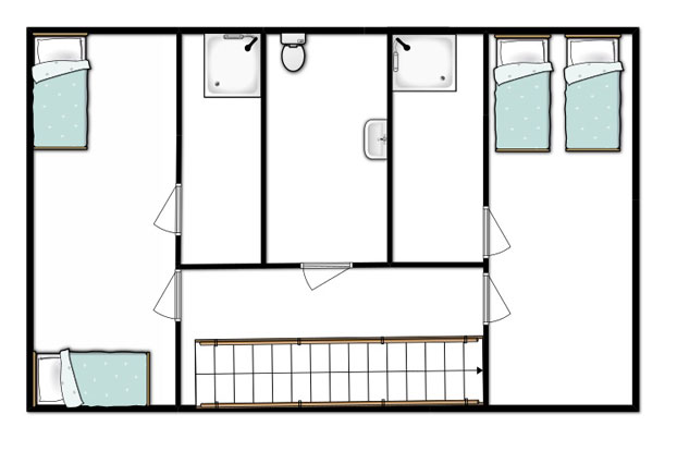 Twin bedroom with shared separate shower and wc across the corridor (the shower & wc is shared with the 1st floor bunk room)
