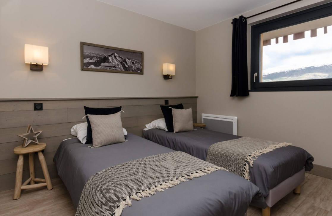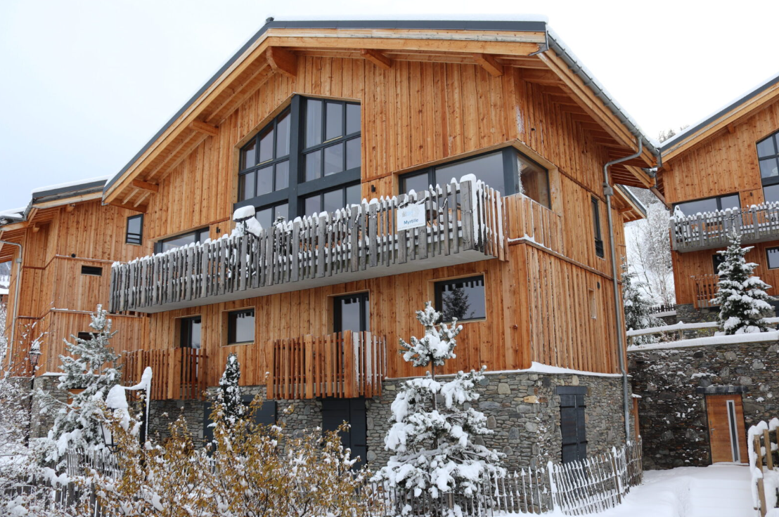 Built in 2017 the first thing you notice about Myrtille is the striking contemporary design and layout. Sleeping up to 12 guests across 5 stylish ensuite bedrooms, the chalet features a first floor ‘family’ room with twin beds, a bunk bed and bathroom. The remaining rooms are all twins with ensuite shower rooms and fitted wardrobes.
