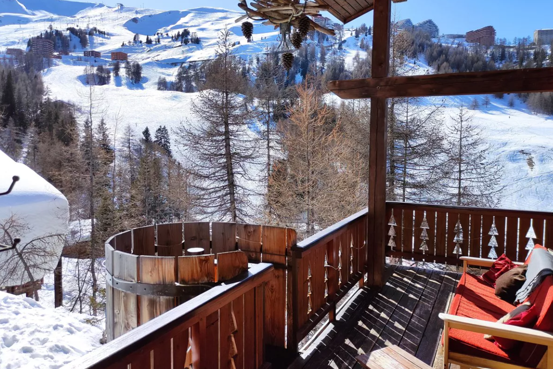This charming, renovated ski chalet is the ideal choice for a relaxing ski holiday in Plagne 1800 with family and friends. In an ideal location in a quiet spot surrounded by forest but only 100m the slopes, what more could you ask for on your family ski holiday in the French Alps.