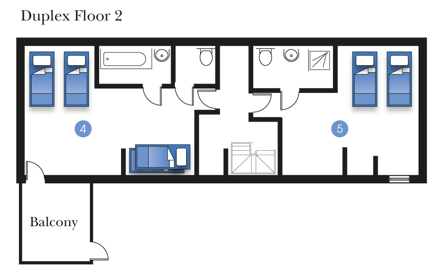 Room 4 - Twin and bunk room with en suite bath, WC & balcony