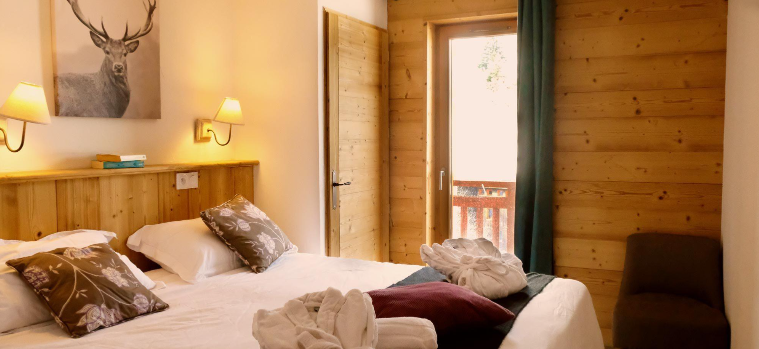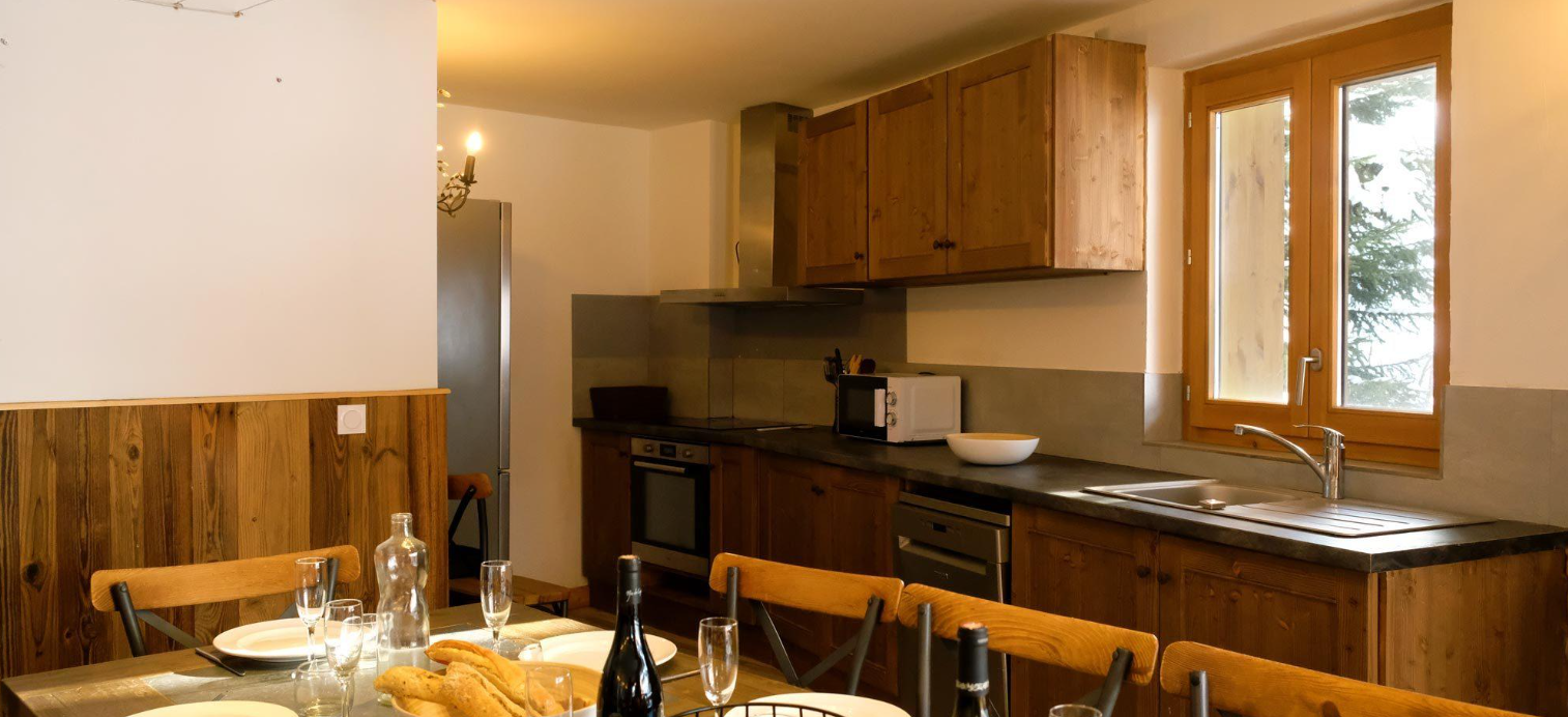 Chalet Vega is one of our new chalets in La Plagne 1800 and was built to a very high standard. It is located in the perfect position in La Plagne 1800 only 100m away from the slopes and it is located close to bars and restaurants. Chalet Vega is a high quality chalet apartment set out over one floor and is on the first floor of our small private chalet which houses four of our chalets and it can sleep12 people in 6 en-suite bedrooms. It has great views from the balcony and there is a private sauna in the chalet