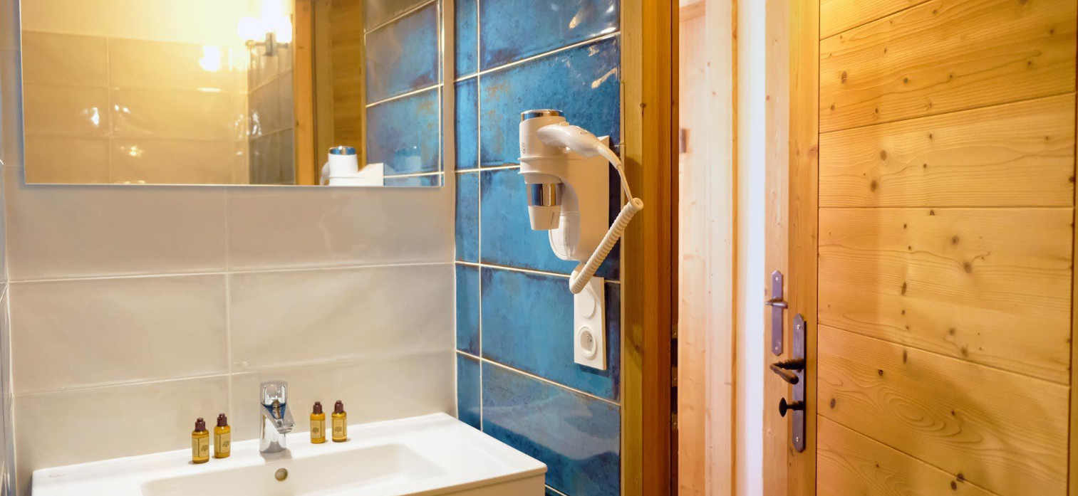Bedroom 3: Twin with piste views and en-suite shower, sink, hairdryer and toilet