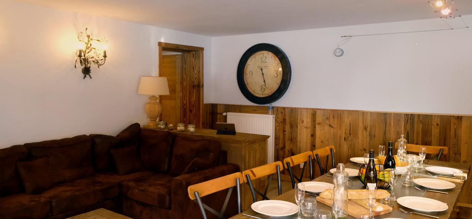 Six bedrooms with en-suite bathrooms, with either slope or mountain views. Lounge-dining room with ski slope views, kitchen, chalet sauna and ski room downstairs with boot warmers. •
