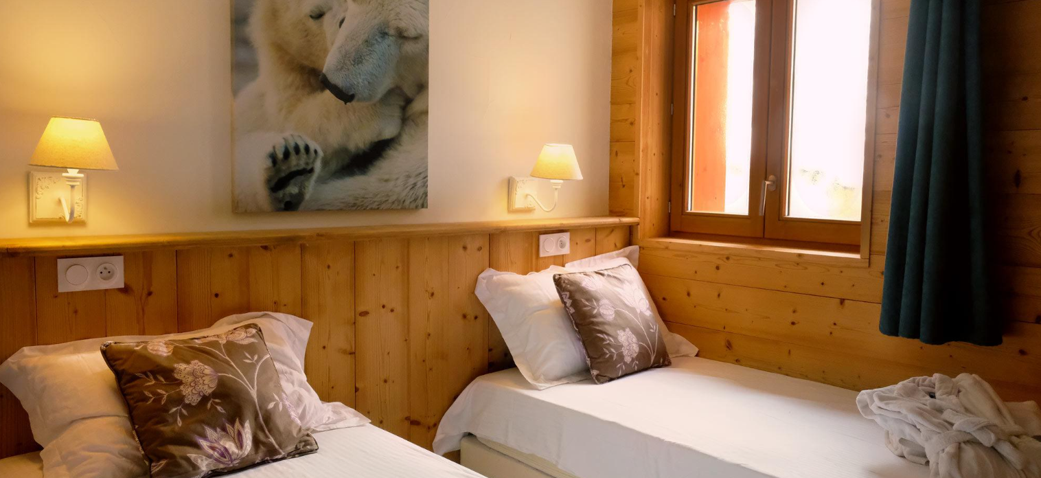 Bedroom 2: Twin with piste views and en-suite shower, sink, hairdryer and toilet