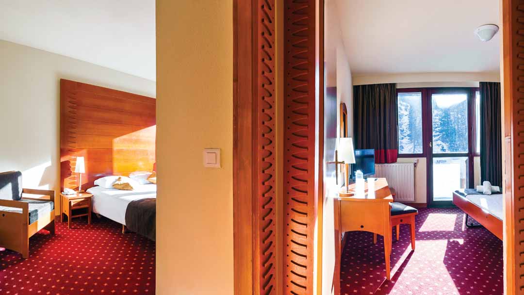 All your meals are served in the hotel's restaurant, which has fantastic panoramic views of the slopes. Take your pick from the buffet, and toast the ski day with free wine as part of your evening meal.