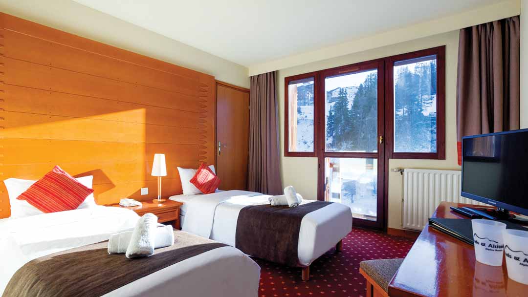 The Terra Nova Hotel is superbly located in Plagne Centre. Right at the foot of 225km of piste, you can jump straight on the chairlift in the morning and ski back to the door at the end of the day. The rooms themselves are pretty basic – but with each one facing either a slope or the valley, you'll wake up to fab views every morning.
