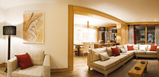 Leman suite sleeps 8 in four bedrooms, and boasts a comfortable living and dining area with a dedicated chalet host. The decor is tastefully sophisticated, with a boutique-hotel vibe thanks to the luxurious soft furnishings, original works of art, solid oak floors, recessed flat screens and BOSE audio systems.