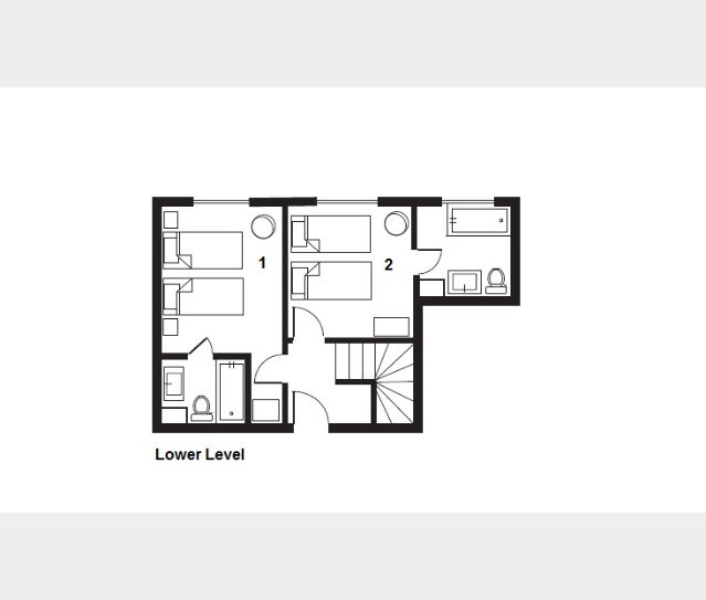 (Lower level) - Twin with en suite bath, handbasin and WC. Limited space for a cot.