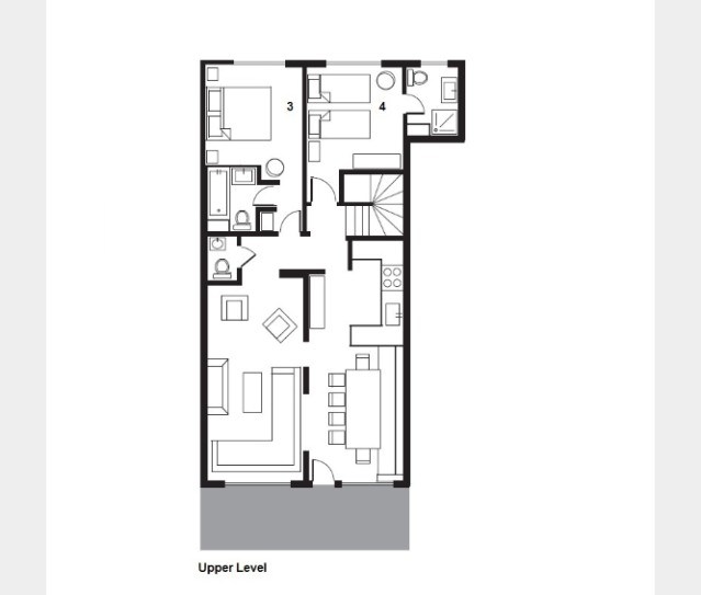 (Upper level) - Twin with en suite shower, handbasin and WC.