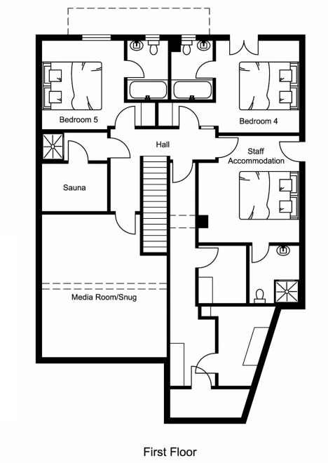The ground floor offers a spacious cinema room, ideal for curling up on the comfortable sofas and watching a film or enjoying a family board game. The chalet has five bedrooms with well-appointed en-suite facilities and heated towel rails.