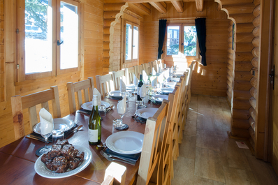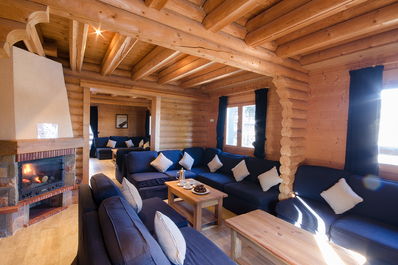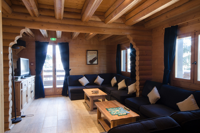 The ground floor entrance to the chalet leads to a boot room with boot warmers and ski storage. On the first floor there are two living rooms offering plenty of seating, and the living and dining area both open out onto a wrap-around balcony, with views of the village, ski lift and mountains beyond. There are two separate staircases leading to the top two floors. These floors are home to the bedrooms, with 5 double (4 of which have private balconies), 2 twin and 3 bunk rooms.