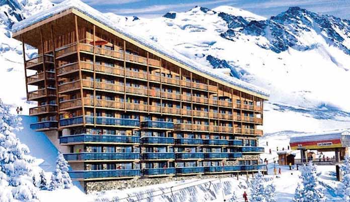 These are brand new luxury ski-in, ski-out apartments built right on the edge of the slopes in Arc 2000, looking out over the valley.