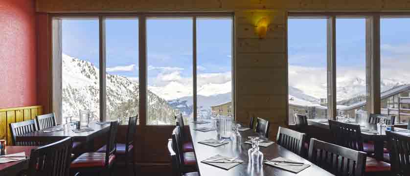 · buffet breakfast · 4-course buffet evening meal with free wine · weekly dessert buffet · weekly Savoyard dinner with fondue or raclette (please book one day in advance) · weekly gala dinner · Christmas and New Year gala dinners included · optional upgrade to full board · optional upgrade to all-inclusive with buffet lunch and unlimited drinks at the bar (hot drinks, soft drinks and fruit juices, plus a selection of alcoholic drinks) · vegetarian and gluten-free options are available on buffets