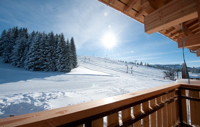 A completely unique position overlooking the pistes, lifts and nursery slopes of Chavannes, 300m vertically above the village centre.