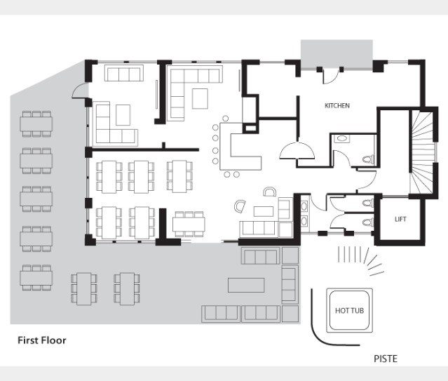 Altitude Lodge is the discerning skiers dream. The piste side bar, lounge terrace and lunchtime restaurant are open to the public during the day. Residents have exclusive use of two private lounges.