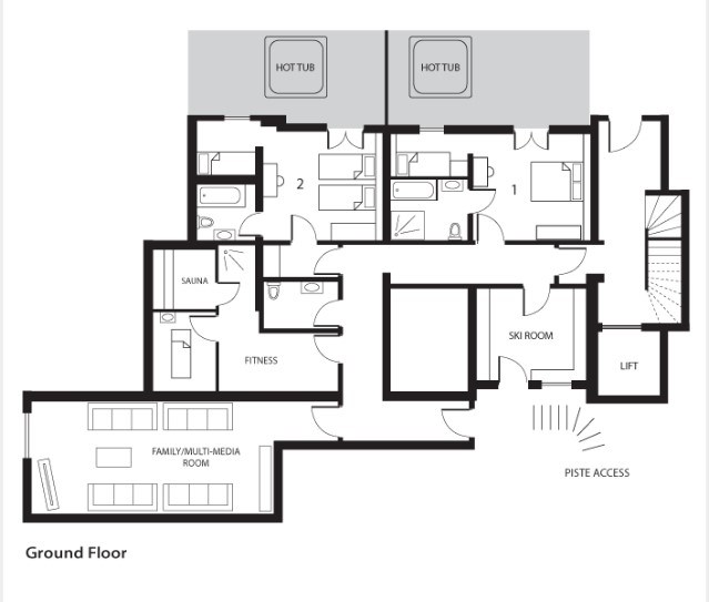 On the ground floor there is a wet suite with sauna and massage room plus access to the outdoor hot tub. There is a family room for children to play in comfort, a facility for Mum and Dad to sterilize bottles and for teenagers to battle with the Wii. After 24 years in the game, we think that we might have at last conceived and delivered the ultimate skiing venue.