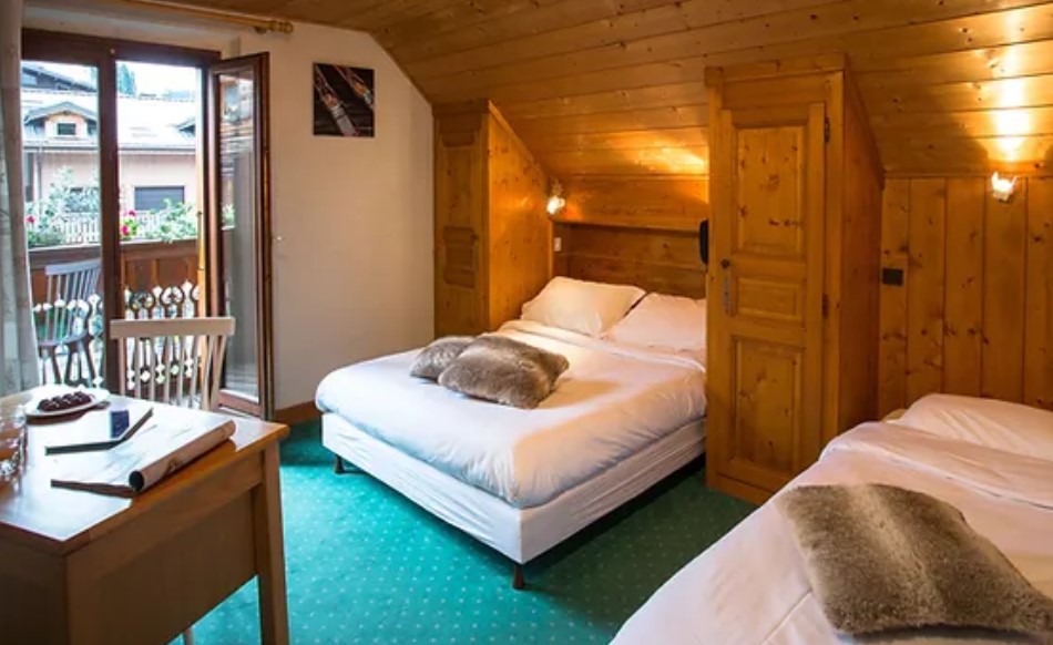 Double or twin rooms (12 m² - 17m²) are decorated in the traditional Savoyard style, with ensuite shower/bath and WC, TV, hairdryers. Some rooms have a balcony. Single and triple occupancy rooms available.