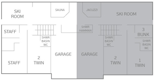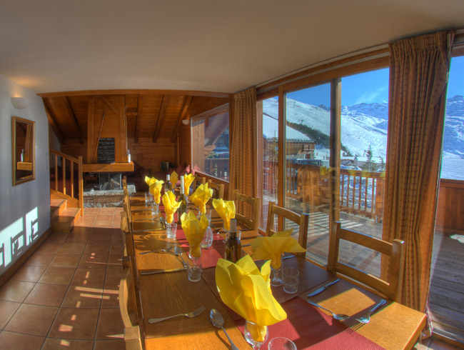 Chalets Annabelle and Brigitte are twin chalets which share superb sauna and hot tub facilities on the ground floor. Each has a cosy lounge and a large balcony with fantastic views. Each dining room can comfortably seat its own guests, but when requested a separating door between the chalets can be opened to allow both chalets to be used by one group of up to 20 guests.