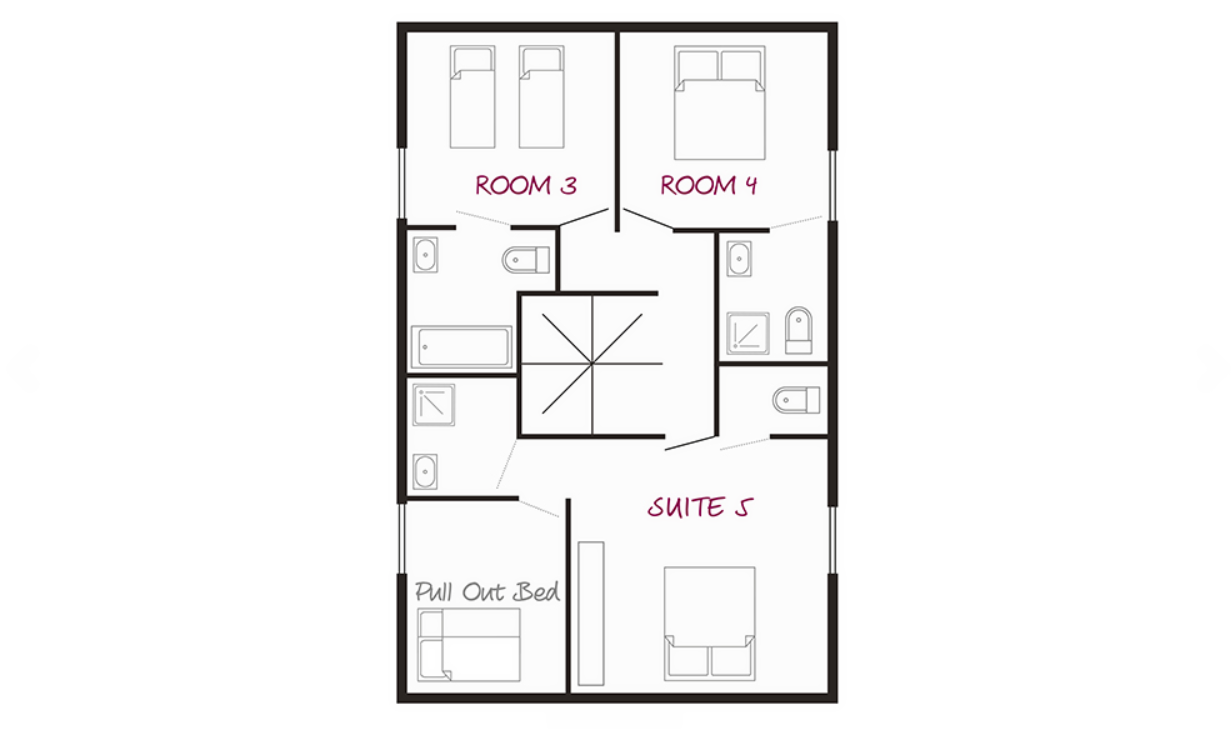 • 2 x family suites including new top floor ‘penthouse’, two double and two twin rooms