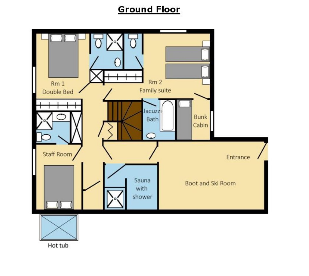Premium service catered chalet to sleep 8-10 people in 4 double or twin en-suite rooms plus a bunk cabine - perfect from small groups and families, hot-tub and sauna