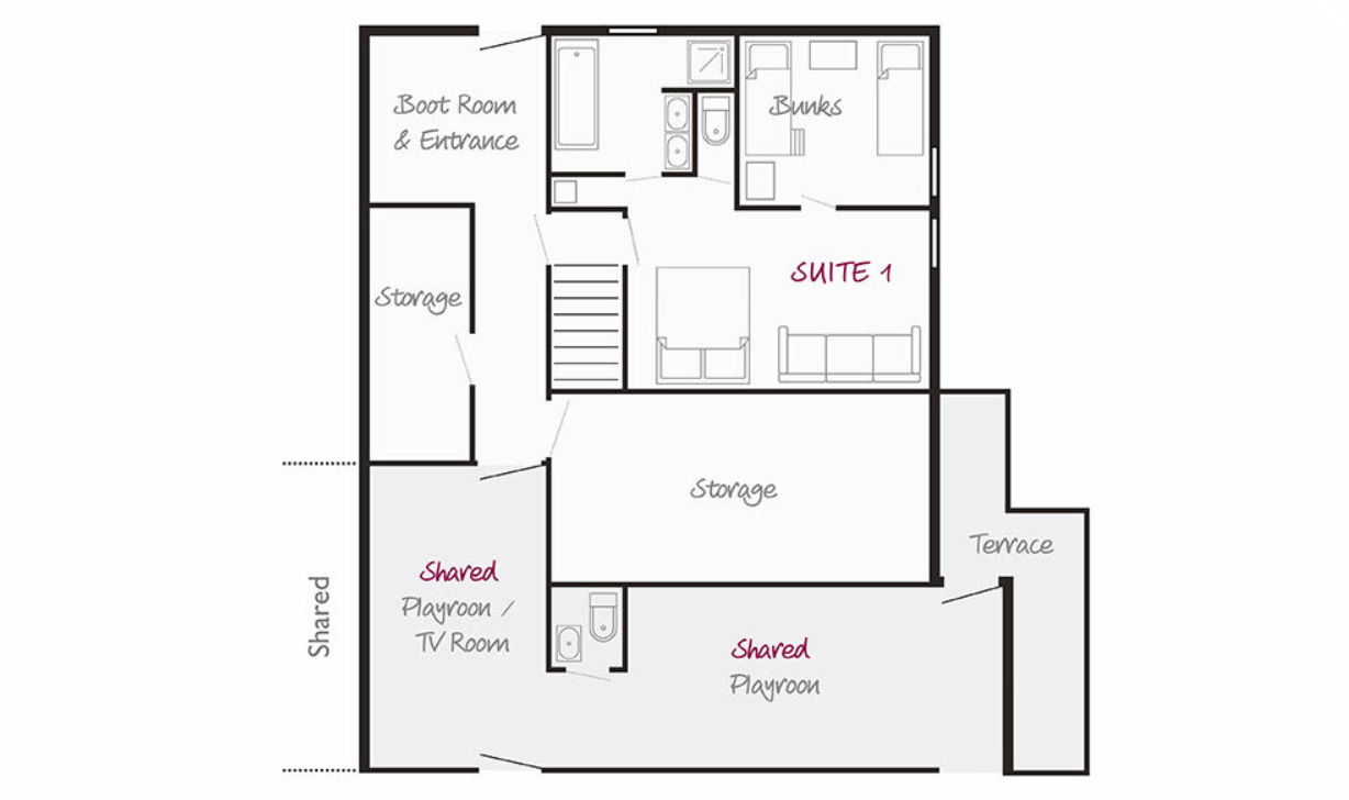 Our Katie chalets situated in a superb Les 3 Vallées location have always been extensively remodelled to suit the needs of families and this year is no exception. The two properties now offer families plenty of space, perfect for three families travelling together who want a chalet to themselves. Both Katie chalets have individual hot tubs on their own sunny terraces. Katie 1 and Katie 2 can be booked together for groups of up to 22 with a connecting corridor through the shared playroom.