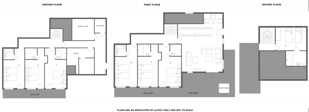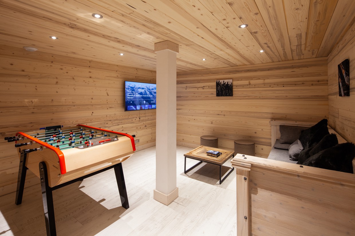 The central suspended wood burner is not only eye catching but a focal point of the open plan living and dinning area. There are simply breathtaking views of the Meribel Valley from the lounge and most of the bedrooms. There are two double bedrooms and five twin bedrooms all offering fully en-suite with shower facilities. The outdoor jacuzzi is conveniently located on the south facing sunny deck and there is a Private Cinema room on the first floor. All the bedrooms are light and spacious. Most have shared south facing balconies with the same dramatic views as the rest of the chalet. There is a ground floor access via a heated boot room with internal access to the rest of the chalet.