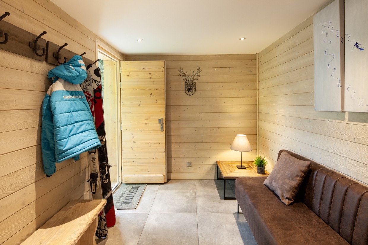 Entrance to chalet. Sauna & shower, wc Ski & boot room.