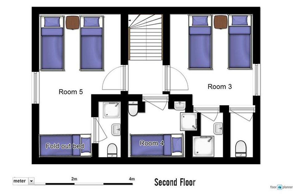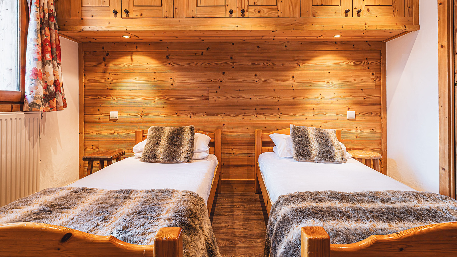 Twin, ensuite with shower and WC, skilight window only (this cannot be opened and is often blocked by snow. Please note the balcony door in this room can no longer be opened), suitable for a cot