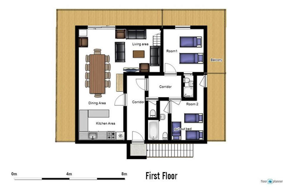 Twin, optional extra pull-out bed, ensuite with shower and WC, suitable for a cot