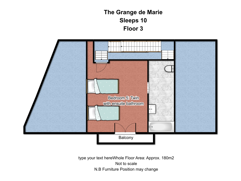 Twin with ensuite jacuzzi bath & loo (space for cot)