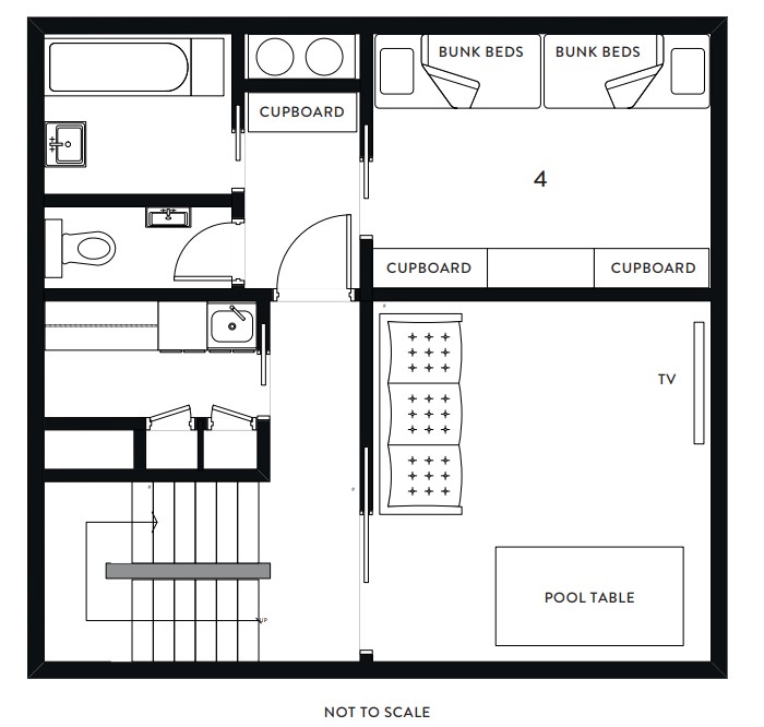 Sleeps 10 in three bedrooms and a quad bunk room (three en suite and one private bathroom)