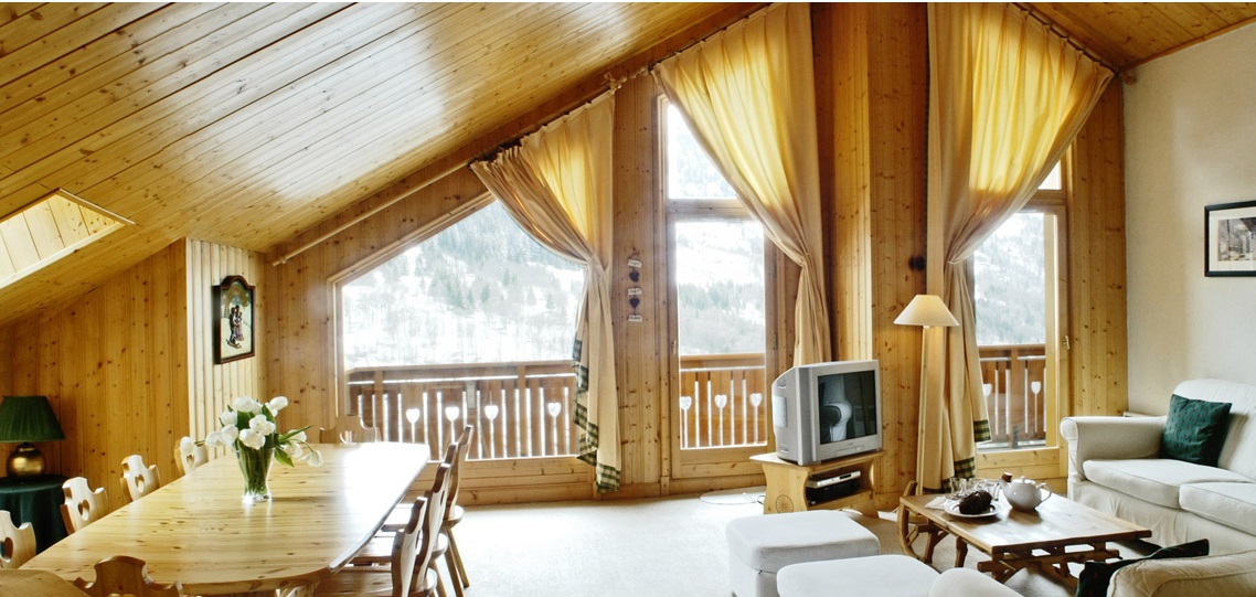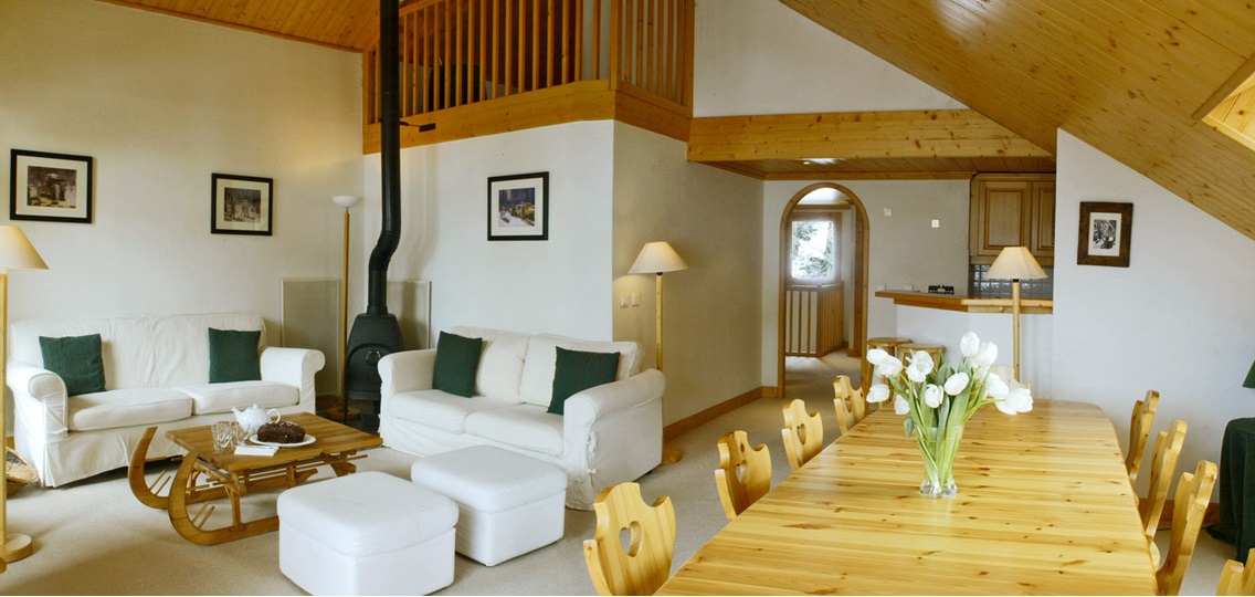 The balcony, which runs along the whole length of the chalet, provides ample space to enjoy the sunshine or, on a snowy day, snooze on the sofas and toast your toes by the wood-burning stove. And if anything can tempt you out of the comfort of home, Chalet Le Lachat’s central location makes it ideally placed for skiing, shopping and après-ski!